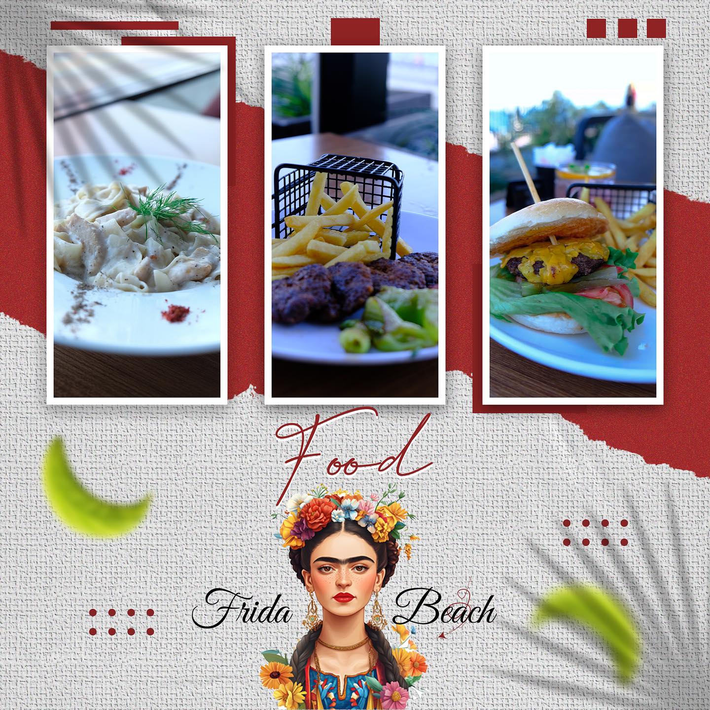 Frida Beach 33, Antalya’nın Konyaaltı ilçesi Gürsu Mahallesi’nde yer alan, hem plaj keyfini hem de bistro atmosferini bir arada sunan benzersiz bir mekandır. Akdeniz’in masmavi sularına sıfır konumuyla misafirlerine huzurlu bir ortam sunan Frida Beach, gündüzleri plajda dinlenmek, akşamları ise lezzetli yemekler ile keyifli vakit geçirmek için ideal bir adrestir. Mekan, sade ve doğal atmosferiyle öne çıkar.